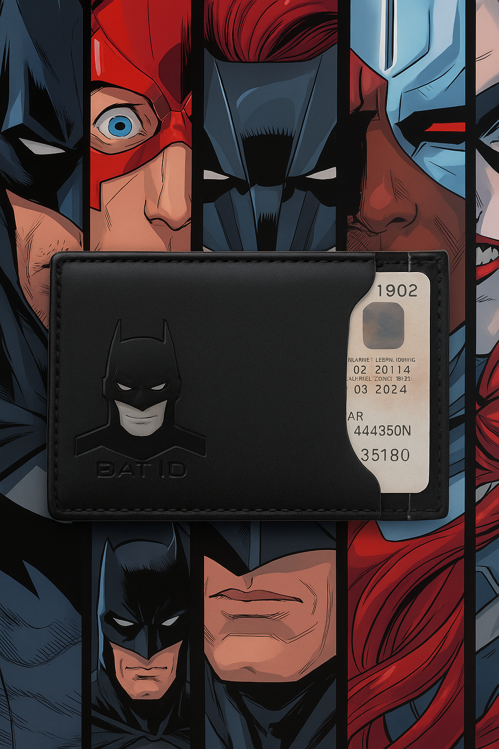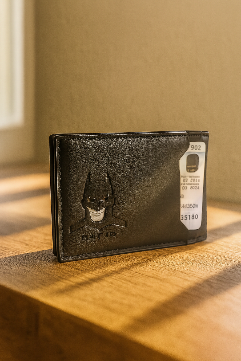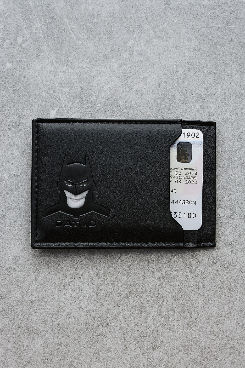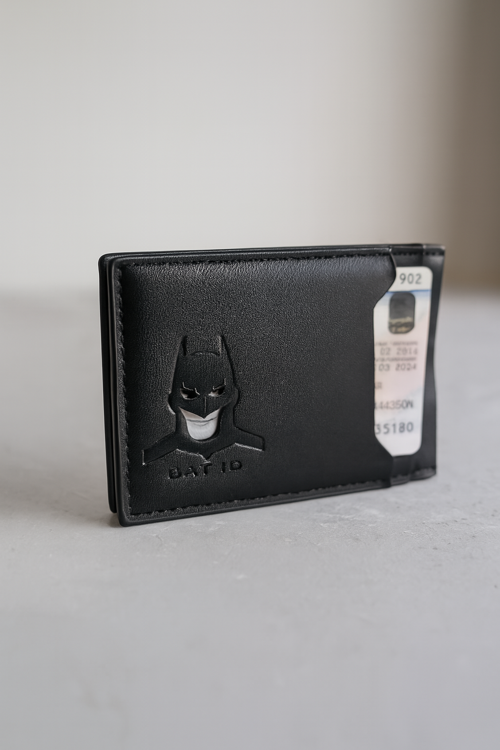 Carry your essentials in superhero style with this custom leather Bat ID wallet — a perfect blend of functionality and fandom. Crafted from premium eco leather, this sleek leather card ID wallet features the iconic symbol, making it a standout accessory for any fan.